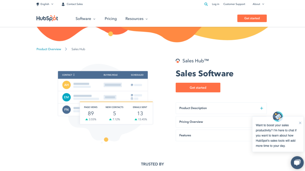 HubSpot Sales Hub is another sales tracking software. As the creators admit, it’s all about loving your sales CRM.