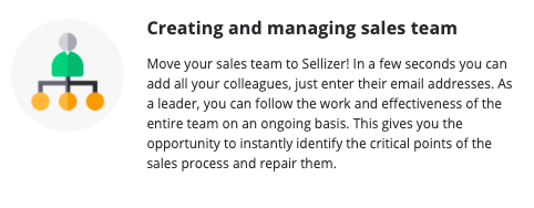- Sellizer improves your sales team efficiency. Make the right decisions at the right time. Thanks to detailed statistics and automated reports you can easily analyse and understand the activities of your sales team.