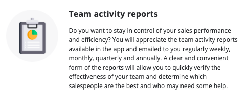 That said, Sellizer'll provide you with crucial sales management features. They can be broken down into two groups: