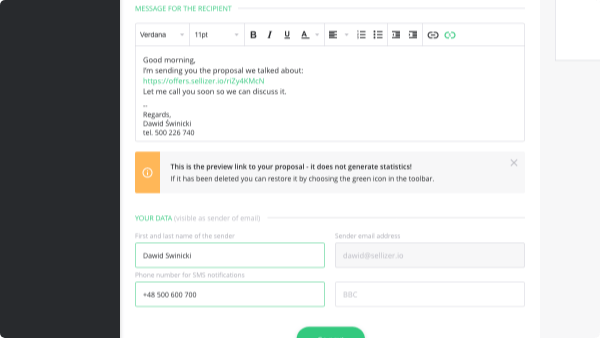 Thanks to Sellizer, I know which parts of my proposals are the most interesting for my customers - it gives me great basis to start a valuable conversation. I can also contact with clients in the best time - when they have my proposal right in front of them. Such combination made it so much easier for me to sell projects