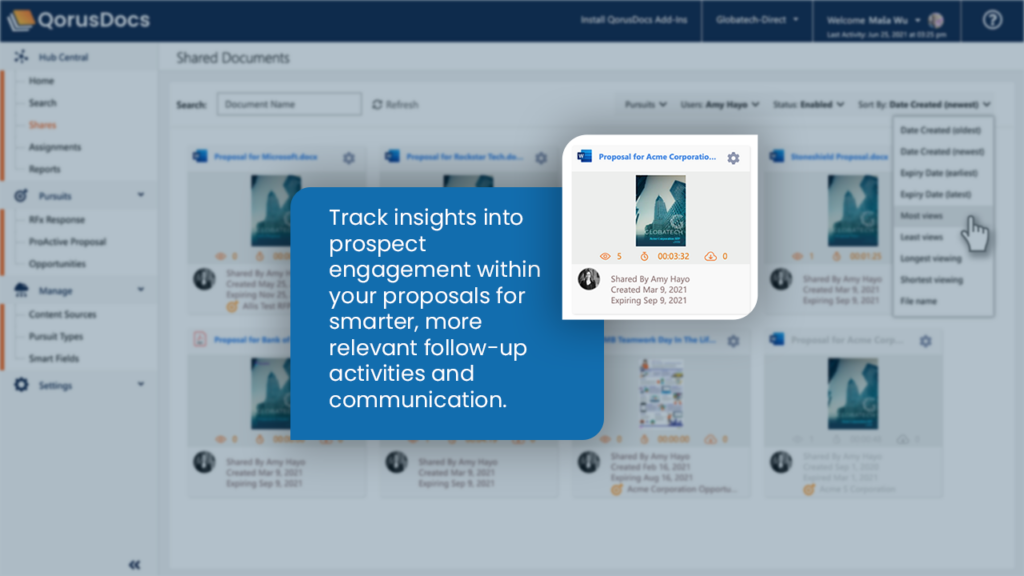 - Securely share proposals and gain insights into prospect engagement.