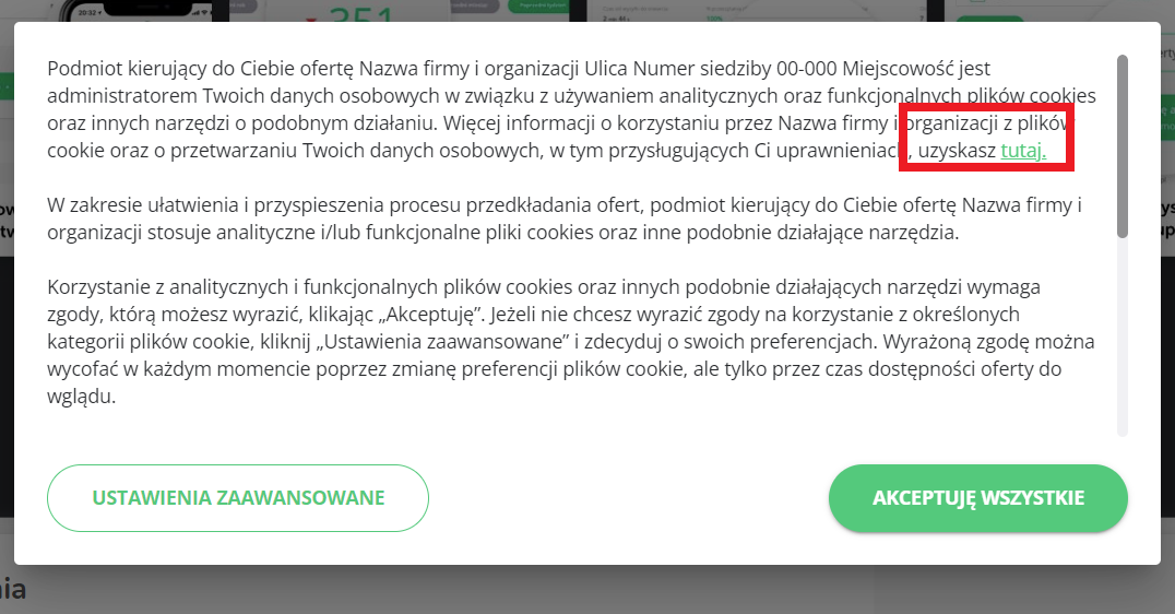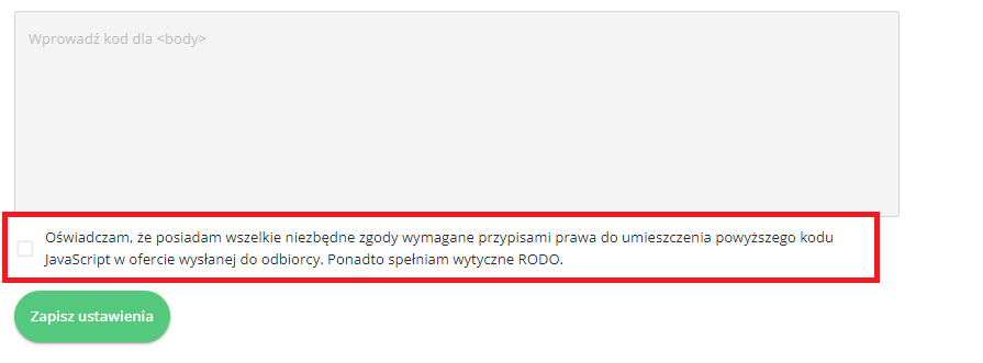 - dodać własny link klauzuli RODO, który wyświetli się odbiorcy oferty,