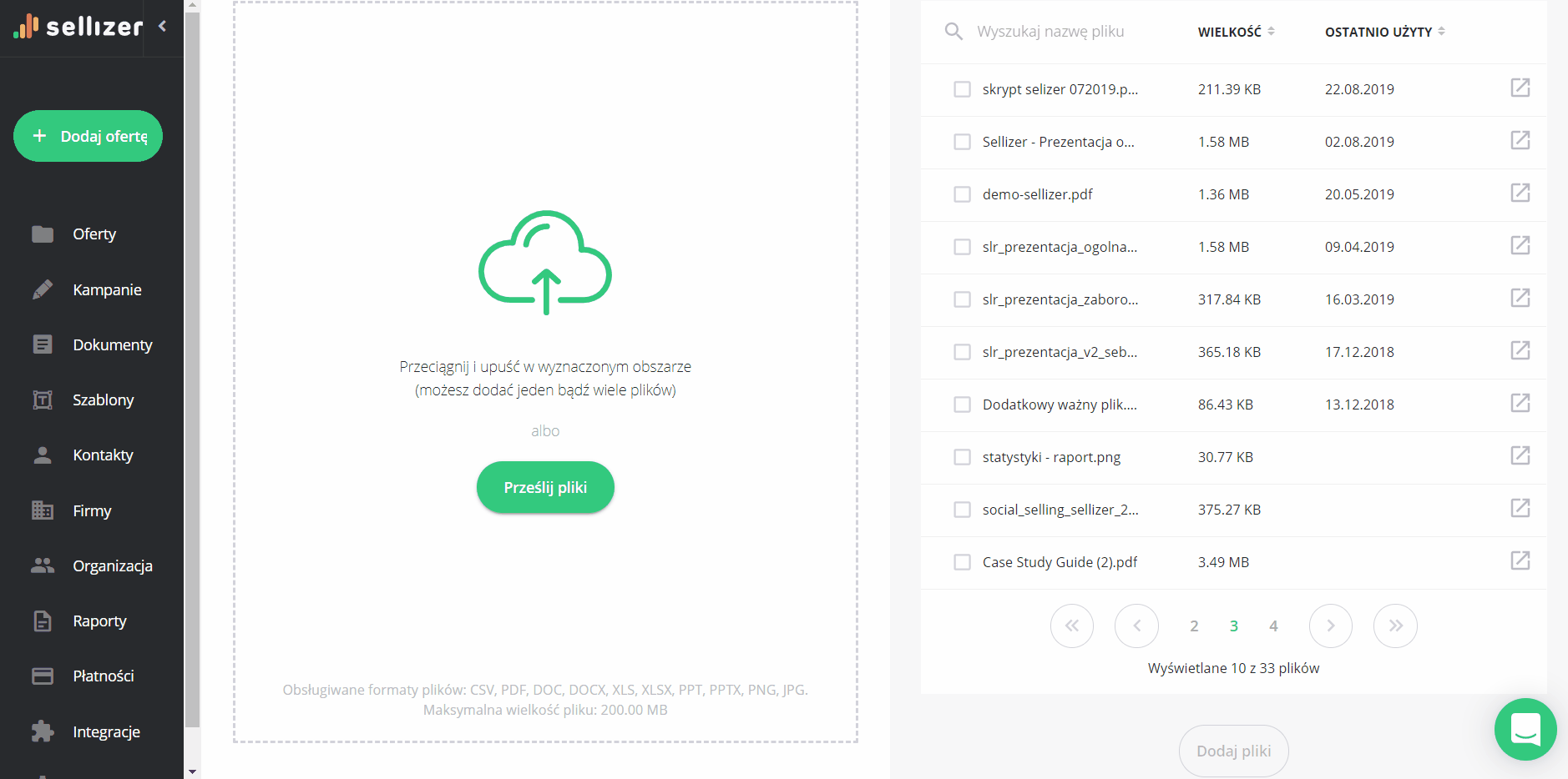 Nowością w Sellizerze jest możliwość dołączania do ofert plików w nowych formatach, takich jak doc, docx, ppt, pptx, csv, xls, xlsx, jpg, png.